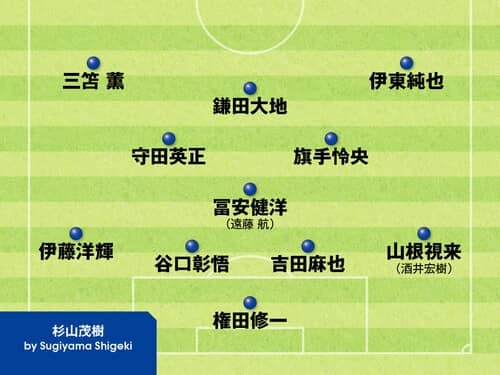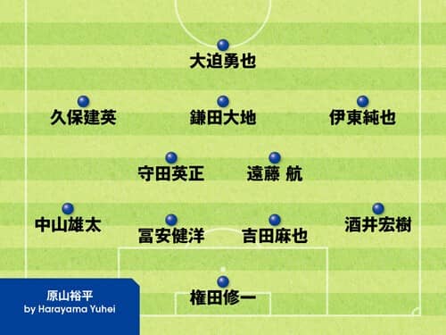 ただし、ボランチタイプも不在のため、他のポジションに回すことも考えられる。予想されるのは、複数ポジションをこなせるタイプ。サイドでも、中央でもプレーできる原口が候補として浮かび上がるが、今回の遠征では出番はなかったものの、より万能型で所属クラブでも好調を維持する旗手怜央の線も出てくるかもしれない。
