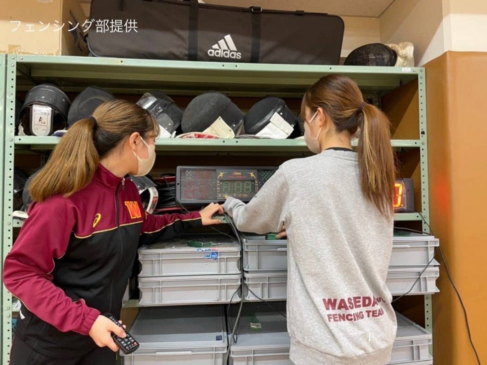 早大フェンシング部を支える寺門陽(右)と杉浦早紀