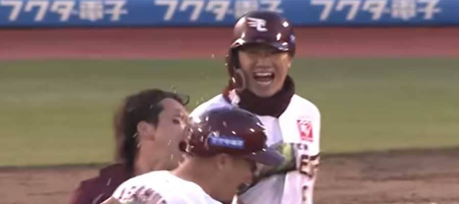 4月30日の本拠地での一戦。2-6と4点を追う9回裏。楽天は2死から暴投と西川遥輝外野手の5号3ランで一気に同点に追い付いた。試合は延長戦に突入し、6-6のまま11回裏へ。西川の四球と小深田大翔内野手の安打で、2死一、三塁とサヨナラの好機を迎えた。ここで浅村栄斗内野手に打席が回ると、カウント2-2からの7球目を逆方向へ弾き返し、右越えサヨナラ適時打。勝ちを決めた瞬間、普段クールな浅村が感情を出して、喜びを表現していた。