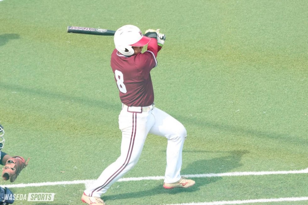 一気に畳み掛けたい早大だったが、「全体として大振りになってしまった」と服部が振り返るように、淡白な攻撃が目立つ。6回までに出した走者は山崎祐太郎(商3=埼玉・早大本庄)の安打と代打・田中雄輔(スポ1=東京・筑波大付)の失策によるもののみ。追加点を奪えないまま試合は終盤を迎えた。
