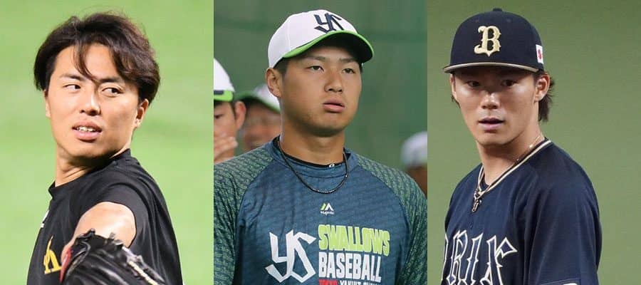 ソフトバンク・田中正義、ヤクルト・寺島成輝、オリックス・山本由伸(左から)【写真:荒川祐史】