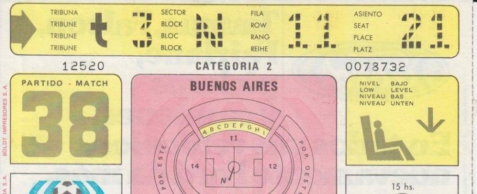 1978年アルゼンチンW杯決勝の入場券 提供/後藤健生