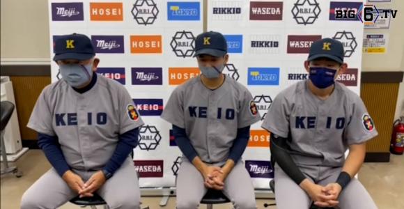 【ヒーローインタビュー】 慶應義塾大学 堀井哲也監督・ 増居翔太(④彦根東)・萩尾匡也(④文徳) | 東京六大学野球