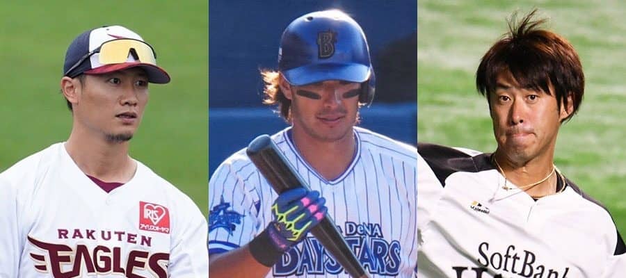 楽天・西川遥輝、DeNA・大田泰示、ソフトバンク・秋吉亮(左から)【写真:荒川祐史、藤浦一都】