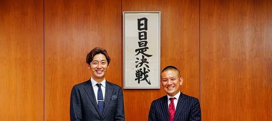 江尻慎太郎さん(左)と代々木ゼミナール副理事長・高宮敏郎さん【写真:荒川祐史】