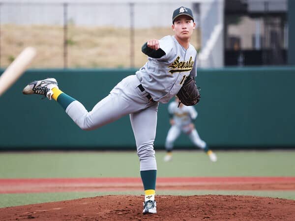 ストレートのキレが印象的な好投手です。2部リーグ所属の投手とはいえ、全国屈指のレベルの高さを誇る東都大学リーグですし、そこで圧倒的な成績を収めているのはもっと評価されていいと感じます。ややアウトステップが気になるフォームではありますが、ラインはしっかりとつくれて変化球を含めてコントロールがいい。球速も140キロ台後半が出ますし、何よりも打者のバットを押し返すような球威があるのは好印象です。プロでも先発タイプとして評価されるはずです。気になる点を挙げるとすれば、軸足で立った後に右ヒザが折れるのが少し早いためボールに角度が出づらく、押し出すようなリリースになっていること。幅広い球種を操るには、改善したいポイントですね。