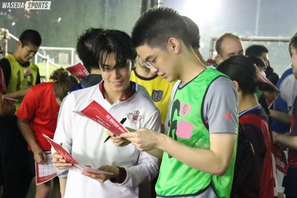 どの試合も拮抗した展開に。言葉が通じなくても、”Good”など簡単な英語や「頑張ろう」など簡単な日本語で意思疎通を図る参加者たち。「何か伝える気持ちとノリである程度コミュニケーション取れた」とGK生方聖己(スポ4=高崎経大付)語る。試合後にはハイタッチをして相手を称えあう。佐藤慧一マネジャー(政3=東京・早実)がキーパーを務め、見事なセーブを見せ、GK生方が華麗なボール捌きを見せるなど普段は目にすることができないシーンもみられた。