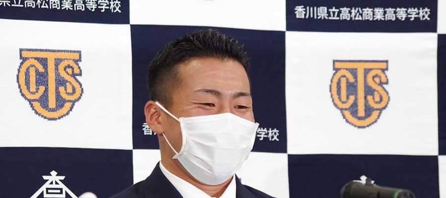 都内のホテルで行われ、高校通算68本塁打の高松商・浅野翔吾外野手は2球団競合の末、巨人が交渉権を獲得した。会見に臨んだ浅野は「まさか競合するとは思わなかった」と驚きの声をあげた。