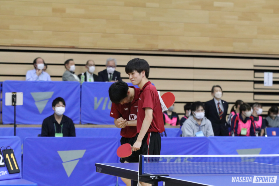 岩永・濵田組は、大会3日目の今日、決勝進出をかけて浅津・小野寺組(中大)と対戦する。また、シングルスにも男女10人がエントリーしている。大会後半も早大卓球部の活躍に注目したい。