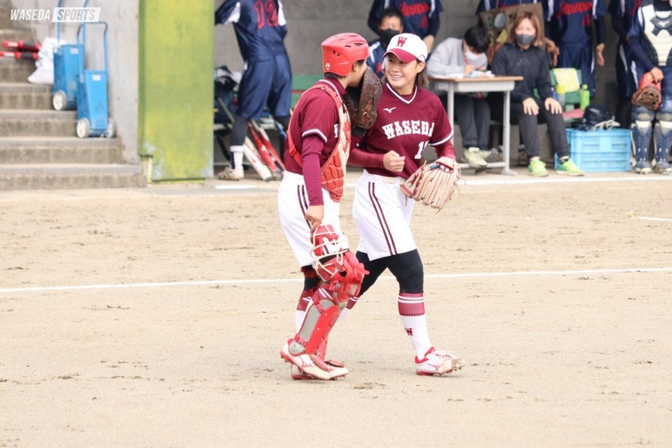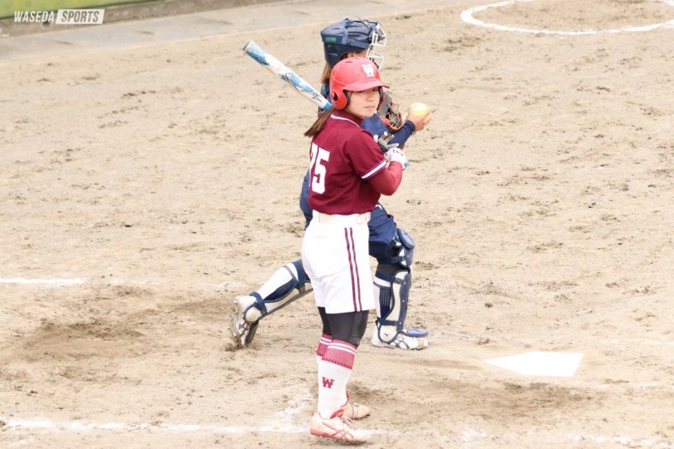 この日の早大は遊撃・根井望(スポ3=東京・吉祥女)がベンチスタート。三塁の高美優主将(スポ3=福岡中央)が遊撃、左翼の関綾乃(スポ2=千葉経大付)が三塁に入り、普段とは異なる内野陣の顔ぶれとなった。