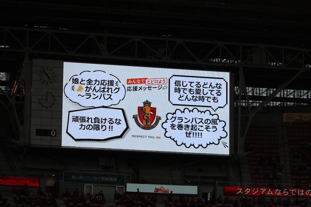 そこには名古屋グランパスを応援するファン・サポーターの熱いメッセージの数々が。これは、「みんなでとどけよう 応援メッセージ」という企画とのこと。