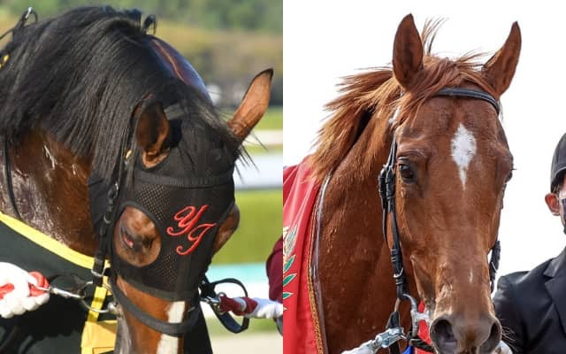 アスクビクターモア(左)(c)netkeiba.com、ジオグリフ(右、撮影:下野雄規)