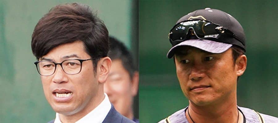 侍ジャパンで投手コーチも務めた建山義紀氏(左)と今季まで阪神でコーチを務めた新井良太氏【写真:荒川祐史】