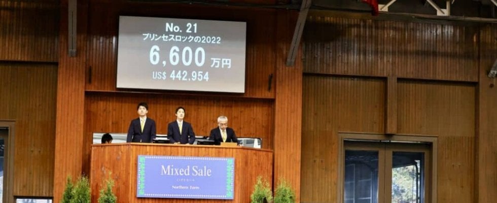 25日、北海道苫小牧にあるノーザンホースパークで、当歳馬と繁殖牝馬のせり市「ノーザンファームミックスセール2022」が…