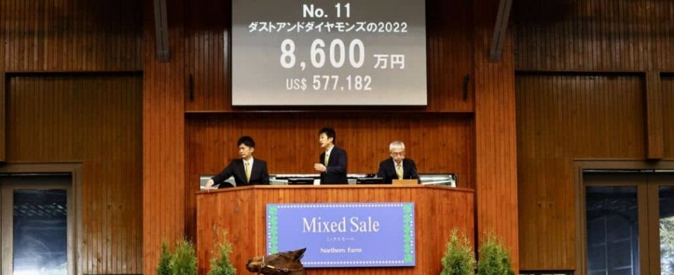 25日、北海道苫小牧にあるノーザンホースパークで、当歳馬と繁殖牝馬のせり市「ノーザンファームミックスセール2022」が…