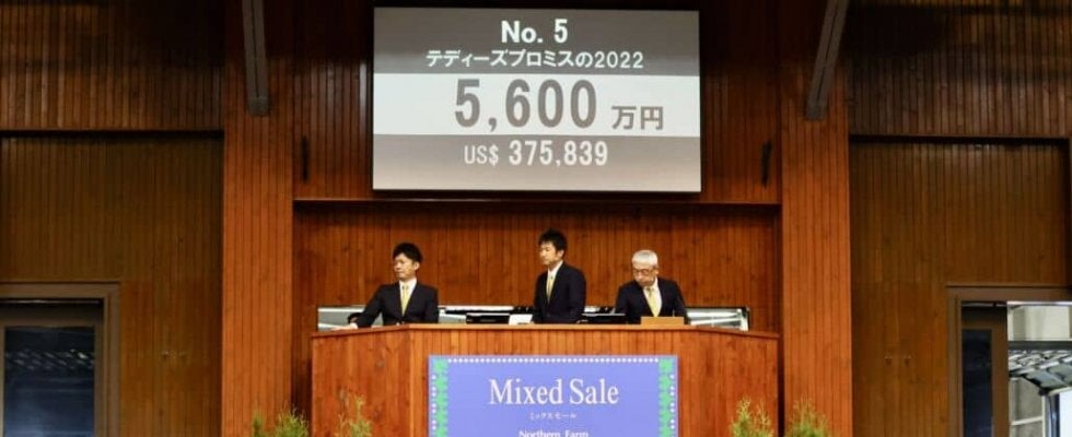 25日、北海道苫小牧にあるノーザンホースパークで、当歳馬と繁殖牝馬のせり市「ノーザンファームミックスセール2022」が…