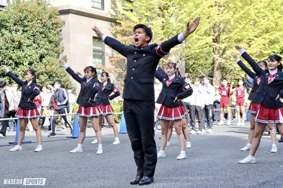 いつも応援部を呼んでいただいてうれしく思います。早稲田の体育各部というところにプライドを持って、また実力も兼ね備えていらっしゃると思います。われわれは全力で応援してまいりますので、引き続き頑張ってください!