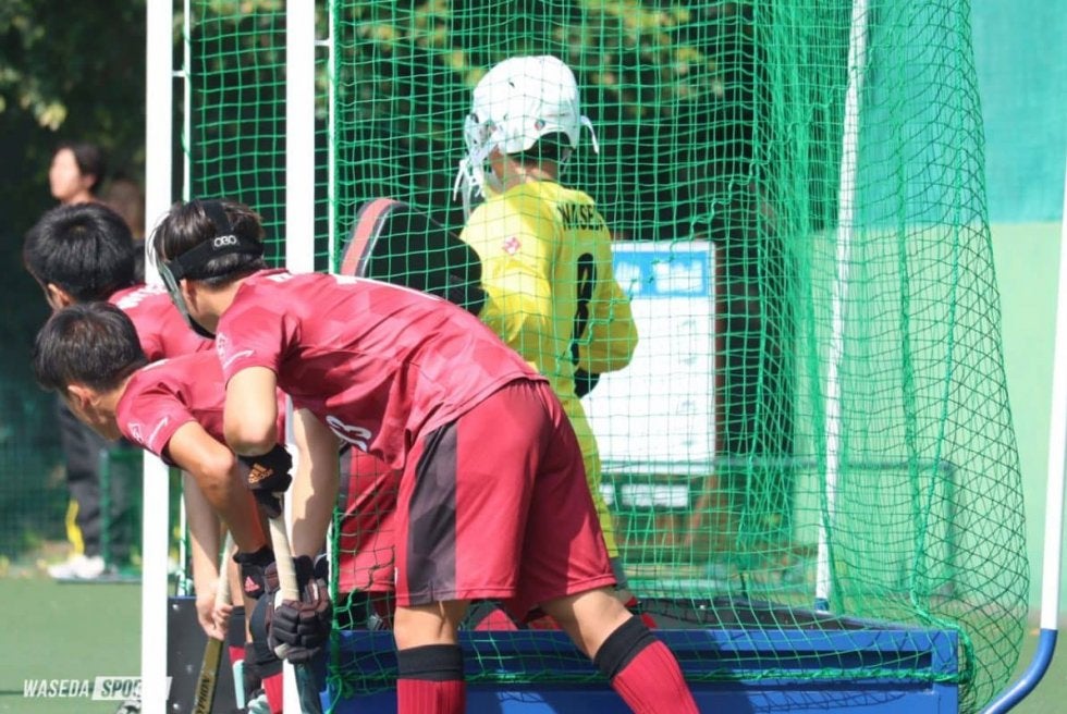 爽やかな秋晴れの下、関東学生秋季リーグ(秋季リーグ)も4戦目を迎えた。負ければ、入替戦への出場が確定するという中で対戦したのは宿敵慶大。慶大には、関東学生春季リーグ(春季リーグ)で2度対戦しており、2戦とも惜敗している。序盤から互いに譲らず、激しい攻防が繰り広げられた。試合が動いたのは第2クオーター(Q)。早大はペナルティコーナーPCを獲得し、FW中島丞一郎(スポ3=富山・石動)がゴール真ん中にパスをして、FW平岩佑利(スポ4=奈良・天理)が冷静に決め、先制する。続く第3Qにおいても、PCを獲得し、FW平岩のシュートのこぼれ球をFW東郷将史(スポ4=兵庫・淳心学院)が押し込み追加点を獲得。早大はこのまま堅守で逃げ切り、2-0で勝利した。今試合の結果により、東農大との5位決定戦に挑む。
