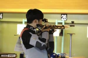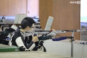 10mエアライフル立射60発競技には島田明日嘉(先理4=東京・早実)が出場。「1発目、8点取っちゃってそこからずるずる引っ張った」と振り返った。後半は立て直し、579.2点で個人107位となった。50mライフル三姿勢60発競技には渡辺泰央(教育4=神奈川・逗子開成)が出場。442点で個人51位と悔しい結果に終わり、来月行われる早慶戦では「今レギュラーでいる人にできるだけ近づいてプレッシャーを与えられるような射撃をできたら」と次を見据えた。