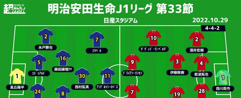 【明治安田生命J1リーグ第33節】 2022年10月29日(土) 15:00キックオフ 横浜F・マリノス(1位/62pt…