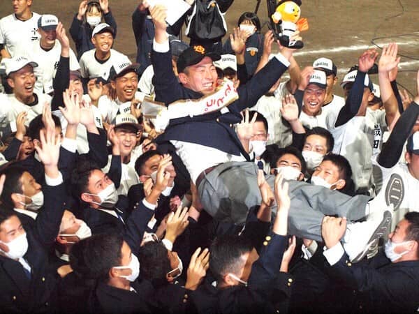 巨人1位指名が決まり、野球部の仲間から胴上げされる浅野翔吾
