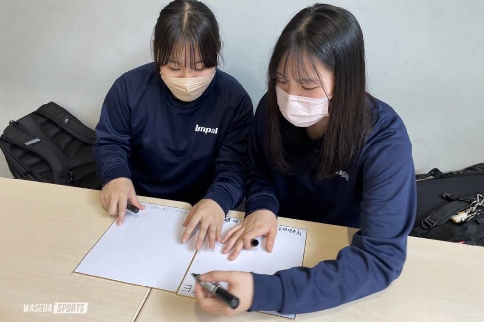 ◆鶴田文乃(つるだ・ふみの)(※写真左) 2002(平14)年5月15日生まれ。166センチ。山梨・日川高出身。スポーツ科学部2年。今まではけがで公式戦には出場できていませんでしたが、秋リーグの入れ替え戦で初出場を果たしました。インカレは鶴田選手の活躍に期待です!カラオケでよく歌う曲は山口百恵だそうですが、同期に同じ曲ばかり歌っていると思われないように、色んな曲を歌うようにしていると話してくれました。