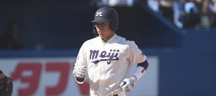 1-2と1点を追って迎えた8回、明大は無死二塁の好機に3番の宗山塁内野手(2年)が右翼席へ逆転2ランを放った。宗山の本塁打はリーグ最多に並ぶ今季4本目。右投げ左打ちの遊撃手で、2年ながら春季リーグでは打率.429で首位打者に輝いた。