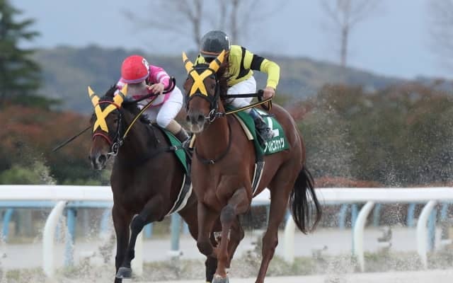 青柳正義騎手騎乗のノブノビスケッツ(写真右)が勝利(撮影:谷口浩)