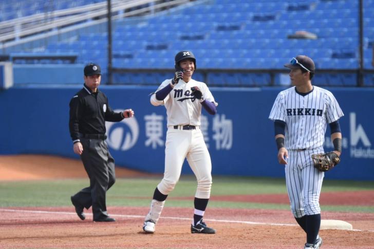1、2年生が躍動した。明大は30日、神宮球場で行われた東京六大学野球秋季リーグで、立大2回戦に4-2で逆転勝ち。勝ち点4で今季全日程を終了し、勝率差で首位に立った。次週の早慶戦で早大が勝ち点を取り、慶大が勝ち点を4から伸ばせなければ、明大が2季連続42回目の優勝を飾る。