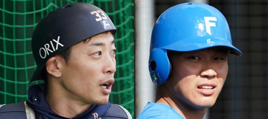 戦力外通告を受けたオリックス・松井雅人(左)と退団が発表された日本ハム・王柏融【写真:荒川祐史】