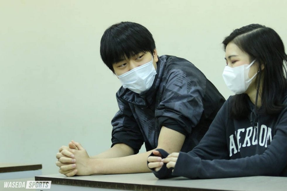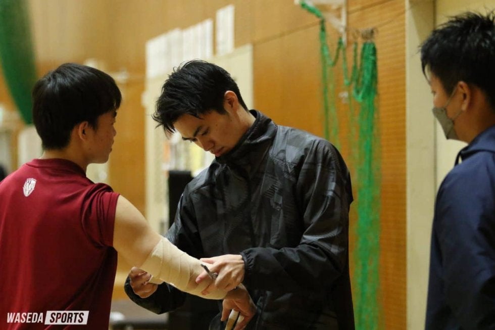 渡辺 2年間、僕と秦は選手として、ケガに苦しめられながらやってきて。僕は手術を2回しても治らなくてどうするかを考えていたのですが、そのときに山名さん(山名未里トレーナー、スポ2=東京・国分寺)が1人の状態で心細いから入ってくれたらありがたいということで。自分としてもチームに貢献したいという気持ちがあったので、その話に乗りまして、トレーナーになりました。