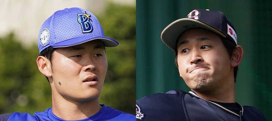 DeNAから戦力外となった浅田将汰とオリックス・宮城大弥(左から)【写真:荒川祐史】