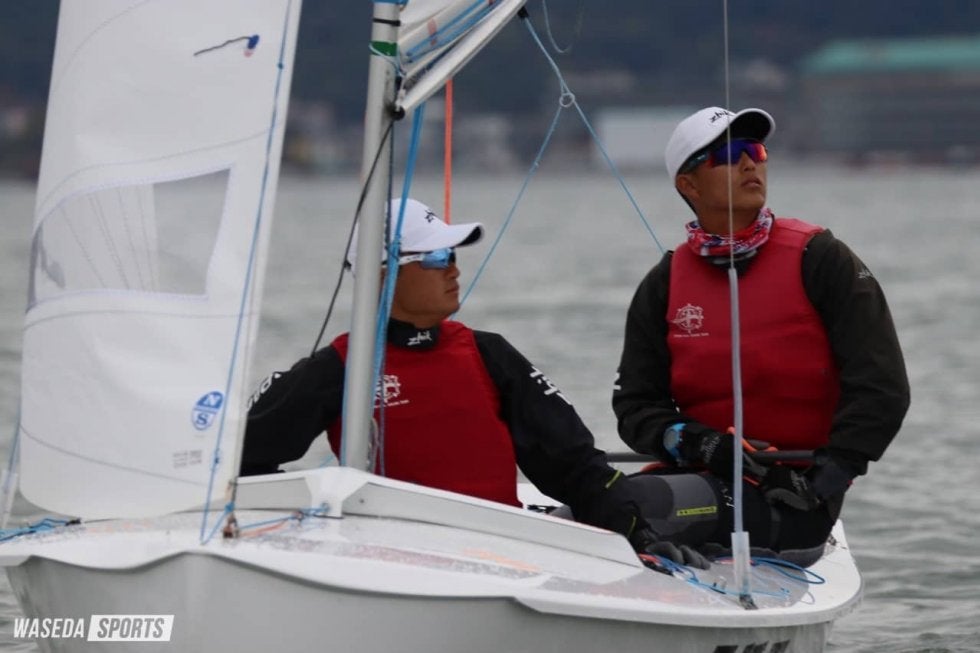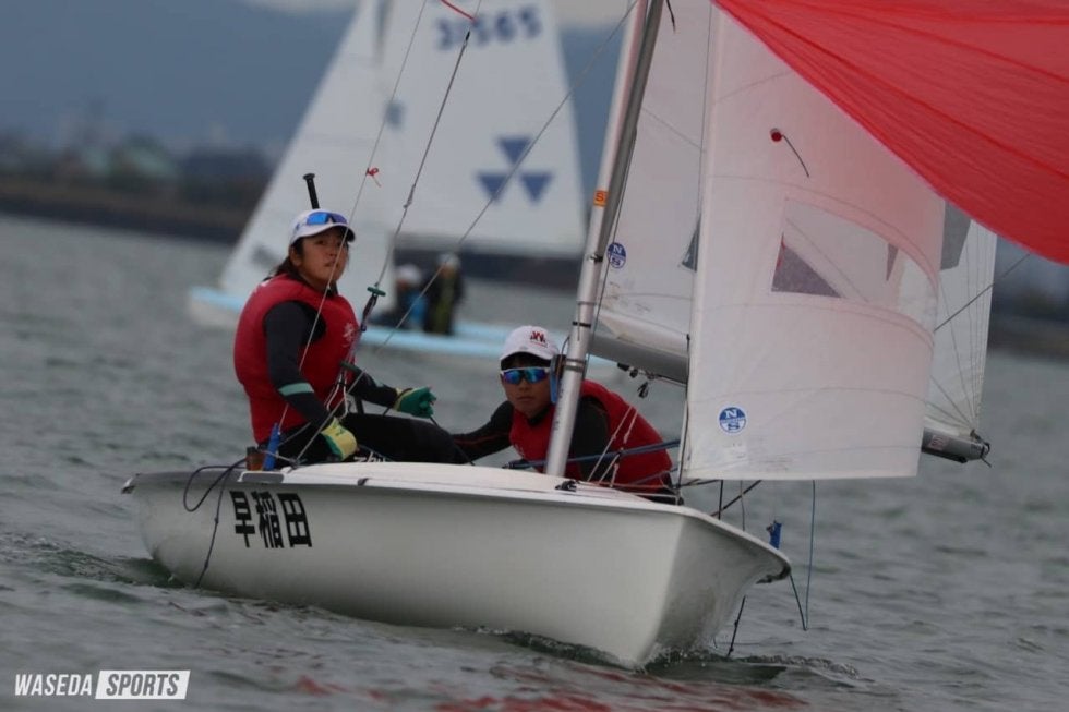 470級は初レースから石川和歩(スポ3=香川・高松商業)・田中丸武(商3=早稲田佐賀)組がトップを奪う。続く2レース目では飯田澪(スポ2=山口・光)・金子俊輔(商4=埼玉・早大本庄)組が1位、倉橋直暉(スポ4=福岡・中村学園三陽)・高田澪(社2=カナダ・エルジンパークセカンダリースクール)組も2位に並び、順調にポイント差を広げていく。最終レースでも飯田・金子組が順位を押し上げ、連続首位に。9ポイント差で無事勝利を収めた。