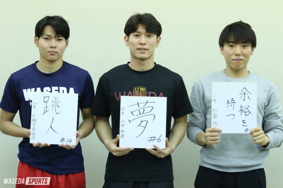 第4回は、山田和直副将(スポ4=群馬・富岡)、白築琢磨(文構2=東京・早実)、外種子田崚汰(スポ1=鹿児島・国分)にお…