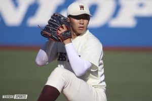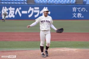 リーグ戦入る前に先発する感じで入っていって、結果的には抑えになっているんですけど、先発した試合で試合を壊してしまったので、そこに関しては本当に悔しい気持ちより申し訳ない気持ちがすごく大きくて。夏も結構オープン戦の中では結果出してきて、秋の先発のポジションを勝ち取ったと思っていたので、周りからも抑えてくれそうだなみたいな期待感とか、自分もある程度の自信を持って臨んだ試合で、全然駄目だったので。すごく悔しかったですし、明治の2敗目で勝ち点落としたところで、優勝狙っているのにあんな大差なゲームになってしまって。その後の試合で立て直せたというのは自分の中ではすごく成長したというか、全部抑えにはなっているんですけど、ちゃんと抑えてここまでこれているので。早慶戦は先発になるのか、後ろになるのかわからないですけど、とにかく投げ切るだけだなと思っているので、なんとか2戦目みたいなことを繰り返さないように頑張りたいと思います。