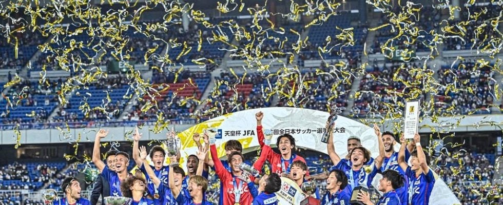 天皇杯を制して喜ぶJ2ヴァンフォーレ甲府 撮影:中地拓也
