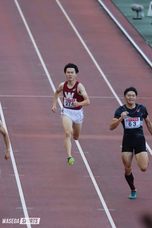 眞々田 僕は全カレが終わってから関東新人(関東新人選手権)、早慶戦、日本選手権リレーと毎週のように試合が続きました。日本インカレの悔しさがあった中で自分のタイムだけで見たら日本インカレのラップタイムはラップベストだったので、1回個人のレースに切り替えました。すると、関東新人も400とマイルで2冠でき、久々に勝ちきれたことで自分の中で勢いづき、収穫がありました。早慶戦は良い調子をさらに1段階上げて、新上さんと同じように日本選手権の標準や46秒台狙おうということで出たのですが、結局(関東新人から)上げることができず、47秒3くらいの良くない意味で安定したタイムでした。全カレの時に日本選手権リレーで勝ちたいと強く思ったので、関東新人と早慶戦で掴んだものをしっかり日本選手権リレーに活かしたかったので、気持ち的な面では日本インカレからどんどん日本選手権リレーに向けて上げていくことができたと感じています。