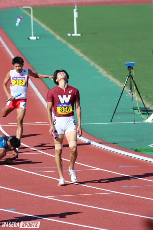 眞々田 僕は、交代しないでしょみたいな考えは全くなくて。特に日本インカレの決勝とかは走りたかったので、予選でラスト100メートル入った時に横に天智龍さん(田中天智龍、スポ3=鹿児島南)が走っている感じがして。練習でもよく天智龍さんと一緒に走って前に行かれることが多かったですし、ヨンパー(400メートル障害)で活躍もされていたので、交代されるのではないかという怖さがあって、見えないものが見えたりしました(笑)。