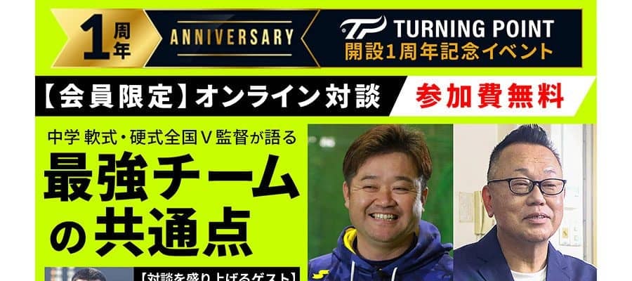 11月14日に参加費無料「TURNING POINT」YouTube Live 野球育成技術向上プログラム「TURNIN…