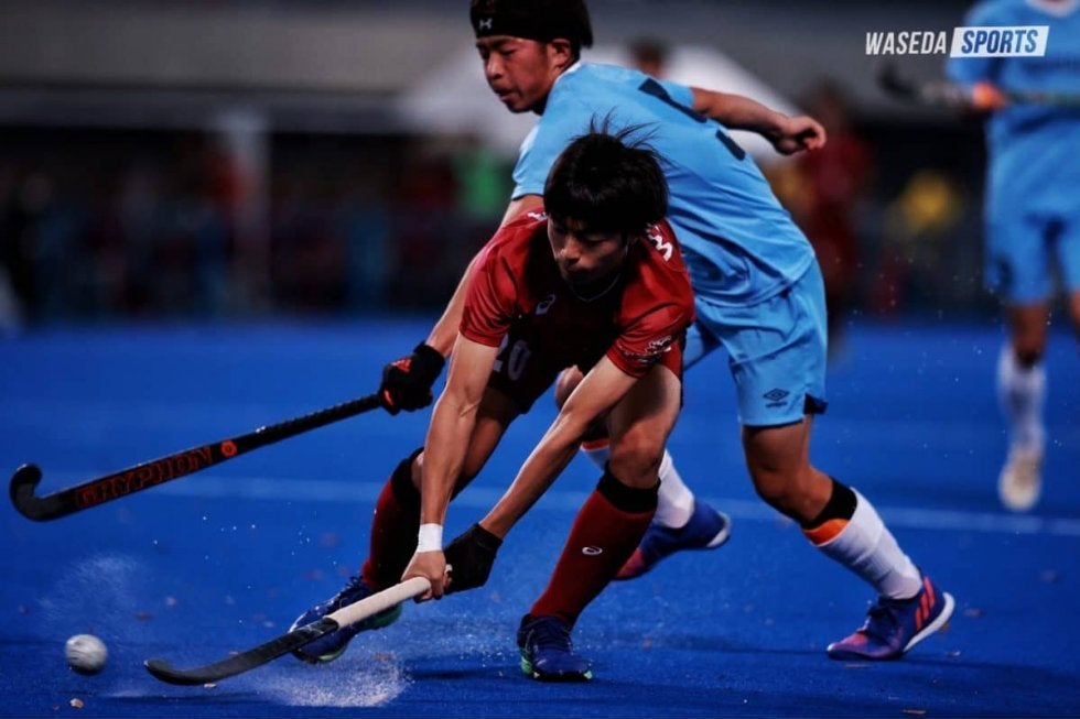 全日本学生ホッケー選手権(インカレ)も2回戦目を迎えた。対戦したのは北海道代表の北大。ボールの支配率は、早大の方がはるかに上回っていたが、相手の全員での守備に苦戦し、先制できない時間が続いた。第2クオーター(Q)の終盤に、連続でペナルティーコーナー(PC)を獲得し、DF小比類巻周(政経3=東京・早大学院)が待望の先制点をあげる。勢いづいた早大は、直後にMF山田和輝(創造理工3=東京・早大学院)が追加点を奪う。攻撃に火がついた早大は、北大ゴールに果敢に攻め込み、第3QにFW岩本捷汰(スポ2=大阪・大阪星光学院)、第4QにDF大多田一真(政経3=東京・早大学院)、FW伊豆蔵顕心(商2=東京・早大本庄)が得点を決め今季最多5点差で勝利した。