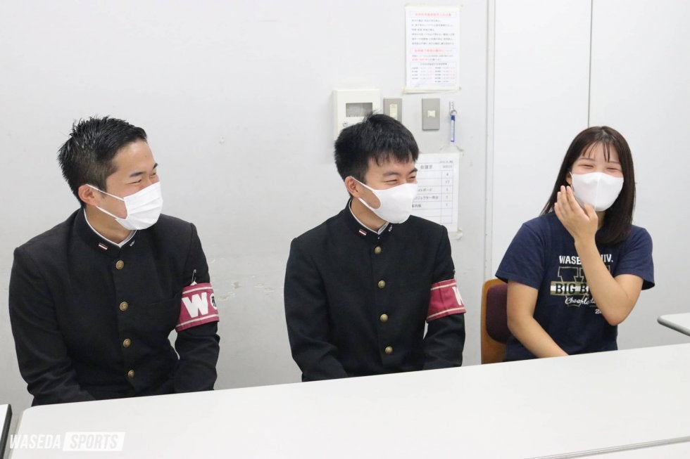 高梨 来週の立明戦(※取材当時。10月29、30日に実施され、明治が2連勝したため、早稲田の優勝の可能性は消滅した。)次第ではあるんですけど、優勝の可能性はまだ全然残っていて、立教が1回でも勝ってくれればって感じなんですけど。なので、もし早慶戦が優勝決定戦になったら、昨年の秋と同様のかたちにはなるんですけど、応援もコロナから戻ってきて、絶対に盛り上がる試合になるので、まずは小野が言ってくれたように(神宮に)来てほしいというのと、来たら一緒に盛り上がって、楽しい応援ができたらいいなと思っています。