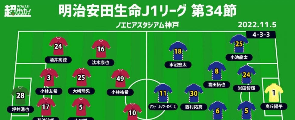 【明治安田生命J1リーグ最終節】 2022年11月5日(土) 14:00キックオフ ヴィッセル神戸(12位/40pt) …