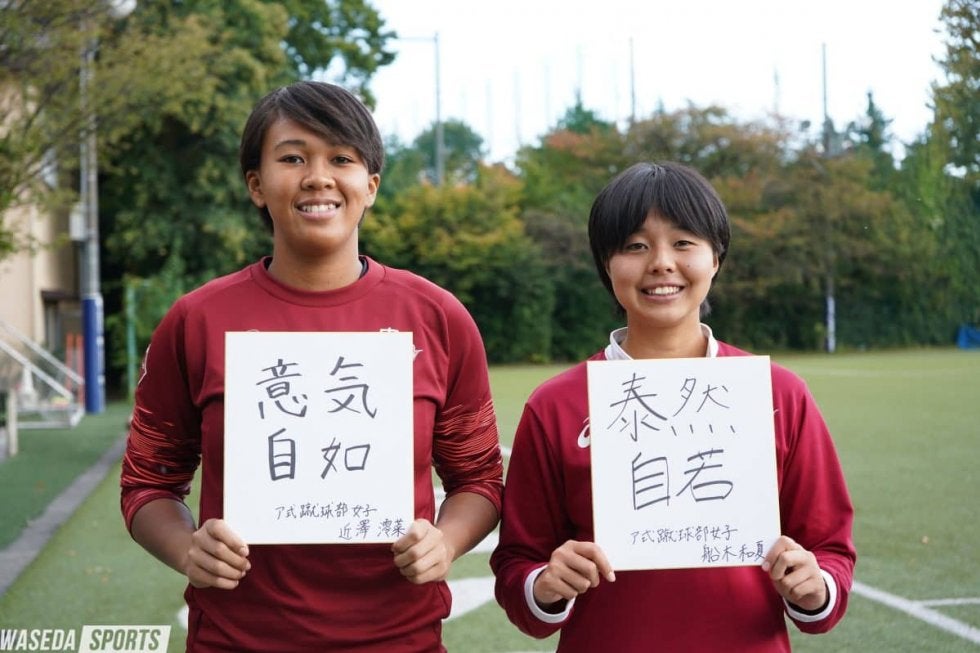 船木 昨年、インカレ優勝して自分たちも大学の日本一という景色を見ました。やはり優勝したいという気持ちが全員にありました。昨年優勝したから守らなきゃというよりも自分たちの代でチャレンジャーとして、今のア女のメンバーで初の日本一という感じです。昨年WEリーグができたので、プロのチームに勝ちたいという、もちろん大学で優勝するのは簡単ではないけど、自分たちの目標としてこれから先プロになりたい選手も早大には多いと思うからそこに向けてやっていくことでインカレ優勝には繋がっていくと思います。目標はデカく、叶えることができない目標ではないと思うので絶対自分たちの力なら果たせると思うというのでこのような目標を立てました。
