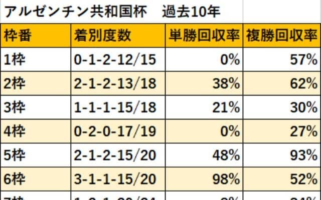 【アルゼンチン共和国杯 枠順データ】外過ぎない外枠が有利か | その他競技