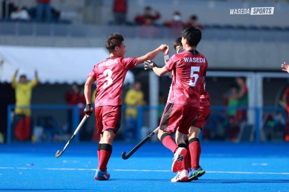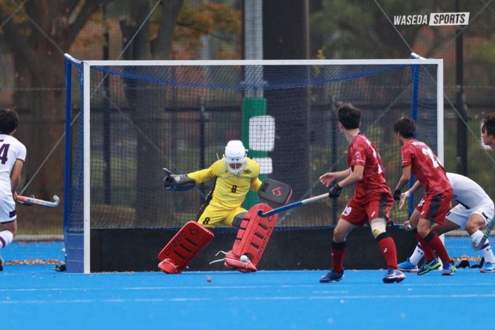 リードされて迎えた第3Q。立ち上がりにPCを獲得すると、FW平岩佑利(スポ4=奈良・天理)の鋭いパスに加藤が合わせ同点に追いつく。このまま逆転といきたい早大であったが、直後のPCを決められてしまい再び点差をつけられる苦しい展開に。さらに自陣でのパスミスから失点しリードを広げられる中、13分、PCを獲得すると小比類巻の今日2点目が決まり1点差に詰め寄る。しかし、第4Qは相手に攻め込まれる時間が続き、5分にPCから失点。同点、逆転へと向かうべく反撃の一手を打ちたい早大であったが、相手ディフェンスの牙城を崩すことができない。終盤に追加点を奪われるとそのまま試合終了。早大のインカレでの戦いはベスト8で幕を閉じた。