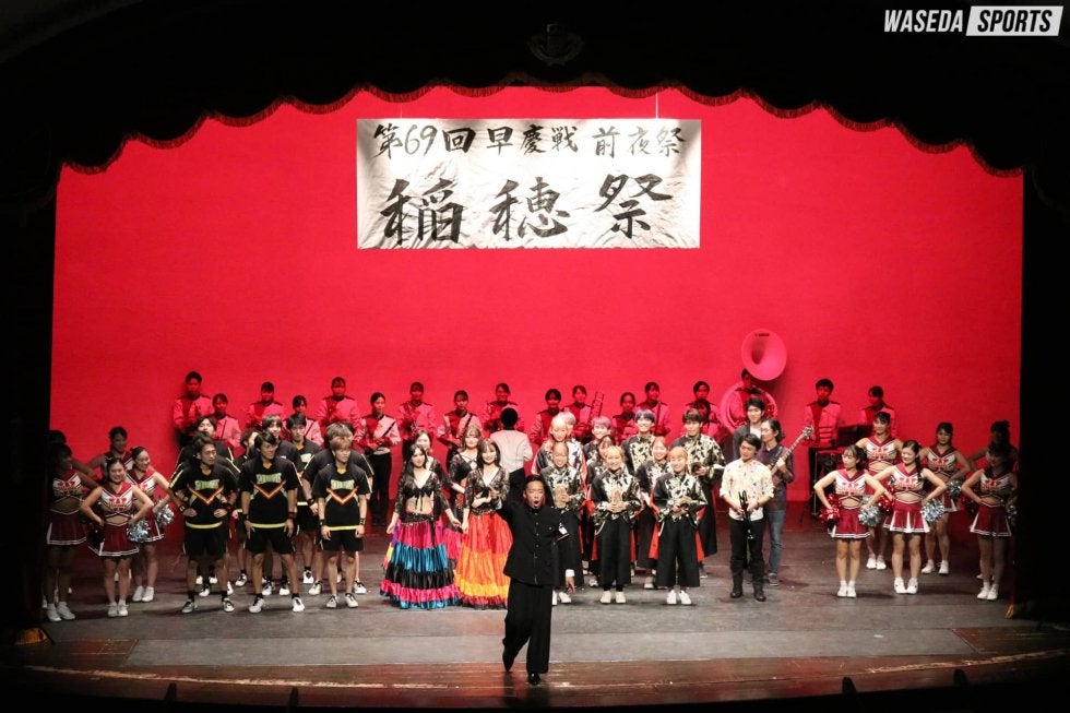 東京六大学野球秋季リーグ戦の早慶戦を直前に毎年催される稲穂祭。早稲田大学の『打倒慶應』を祈願する大切な儀式である。そんな稲穂祭は3年ぶりに観客を大隈記念講堂(大隈講堂)に迎え入れた。平日の夕方に実施され、授業を終えた学生も多数来場。サークルコラボステージ、早慶応援合戦、野球部壮行会の3部構成で観客を魅了した。特に、応援合戦と壮行会は3年ぶりの開催。稲穂祭が従来の形を取り戻し、両校部員にとっても感慨深いステージとなった。