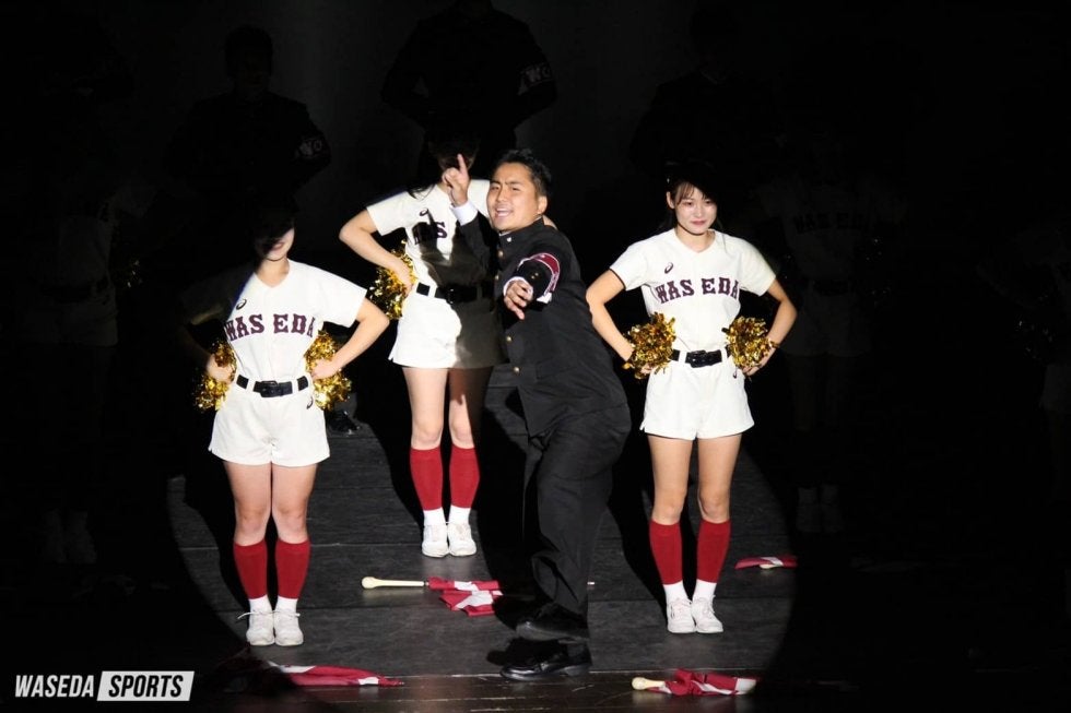2012年の東大応援部主将の岡崎(幸治)さんのような気合系のテクが僕は好きで、僕が新人だった時に4年生だった小宮さん(佑一朗氏、令2法卒=東京・早大学院)もその人が好きで、「力強いテクを振りたい」と言っていたので、僕も力強いテクを振りたいと思うようになって今回の『紺碧』も振りました。文字切りは旧テクで振りました。『早稲田健児』も力強くテクを振りたいと思っていました。僕が今回出ていた曲の中で唯一リーダー下級生とチアがいて、チアのロールがある曲だったので、後ろの人の思いも背負って全力でテクを振りました。