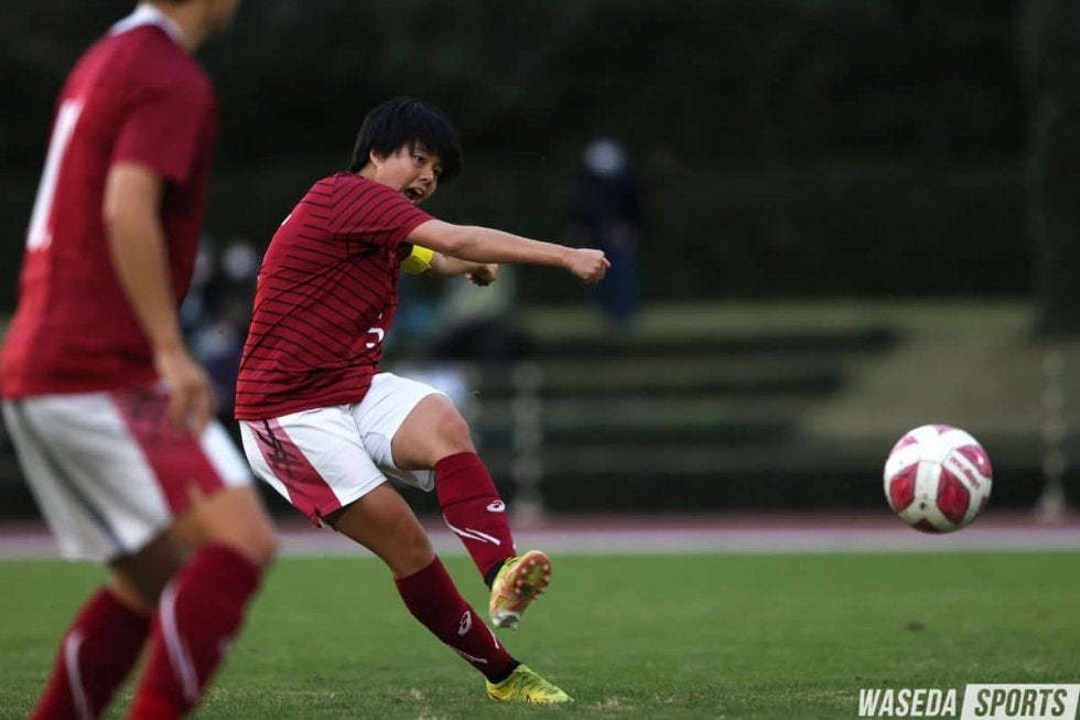 早慶戦で晴れて復帰した船木主将。1点目のアシストのほか、前半にはポスト直撃のシュートを放つなど積極的なプレーが多く見られた