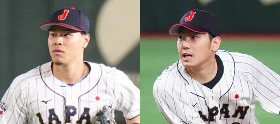 侍ジャパン・佐藤輝明(左)と石川柊太【写真:荒川祐史】
