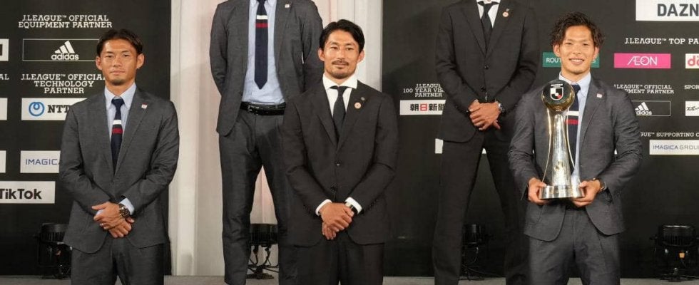 2022シーズンの明治安田生命J1リーグで優秀選手賞を受賞し、ベストイレブンに選ばれた川崎フロンターレのMF家長昭博が喜…